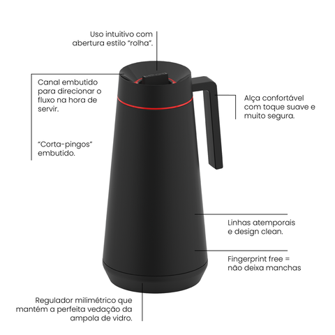 Com linhas atemporais e design clean, o bule térmico da linha Exata combina com qualquer estilo e ambiente.